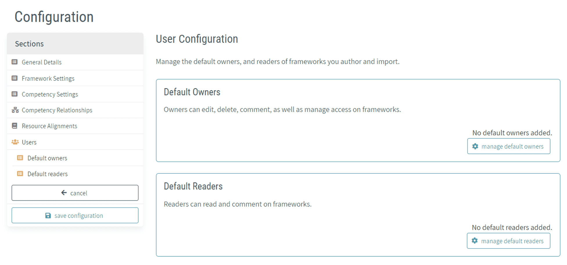 The TLA Reference Implementation's Competency Registry is currently an implementation of the CaSS Competency Framework Library. A framework created in CaSS can be viewed by anyone but can only be edited or deleted by the original creator. CaSS consists of open-source code that allows users to define, store, manage, and access Competency Definitions (e.g., Competency Objects). Competencies are organized into structured collections called Competency Frameworks. Competency Frameworks define the relationship between competencies in the context of a specific domain (e.g., job, duty, occupation). The CaSS Framework Library contains persistent, unique URLs that any connected system can use to access and reference the different Competency Frameworks and their respective Competencies.