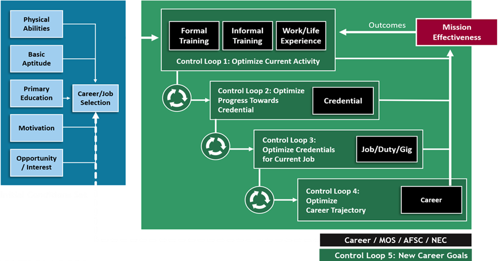 - Control Loop 4: Lifelong learning data to support career field management and the planning of education and training goals for an overall career trajectory.