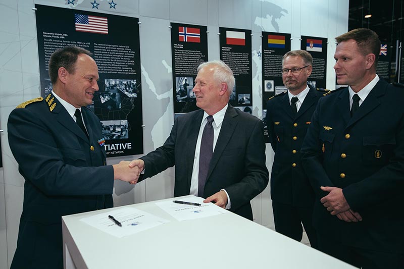 Senior leaders from the US Department of Defense and the Swedish Armed Forces (SAF) conducted a signing ceremony at the Interservice/Industry Training, Simulation and Education Conference (I/ITSEC) on 27 November 2017. Mr. Charles (“Fred”) Drummond, Deputy Assistant Secretary of Defense for Force Education and Training in the US Office of the Secretary of Defense, and Major General Anders Callert, Assistant Chief of SAF Training and Development and Chief of Training, together executed the “Intent to Cooperate” agreement for their respective organizations.