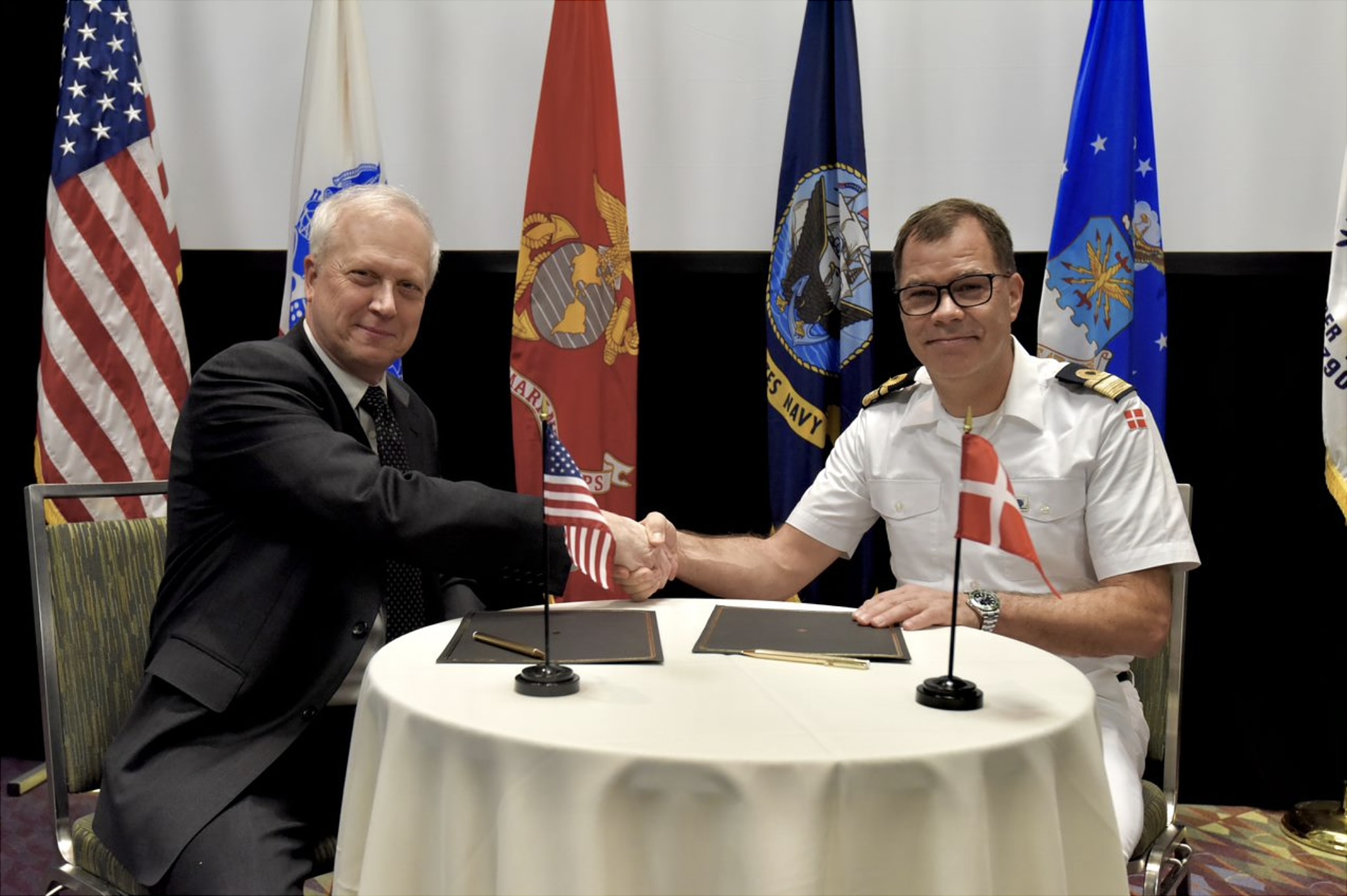 Mr. Drummond (left) and Admiral Ryberg (right) bring Denmark into the ADL Global Partnership.