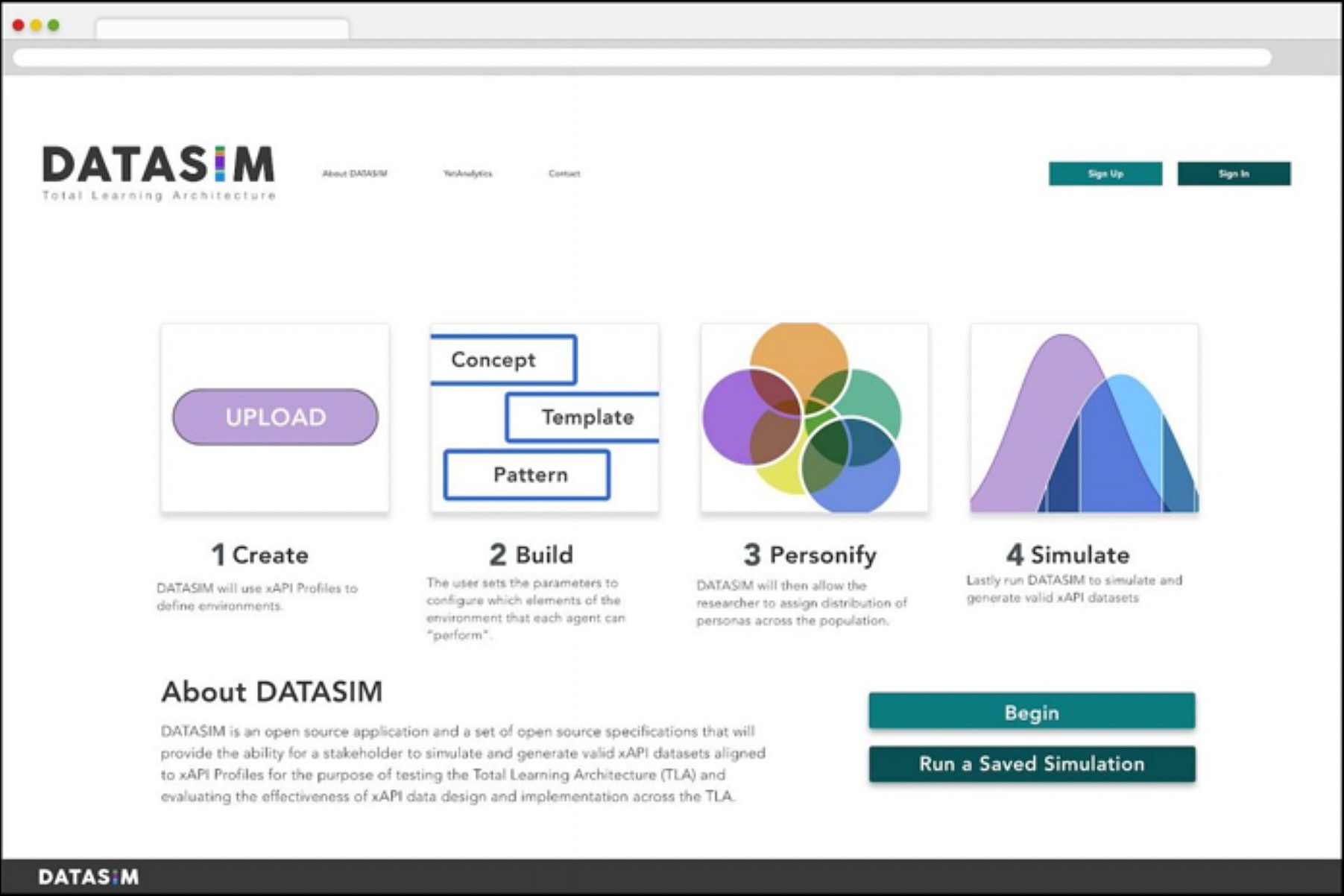 • In a collaboration with USALearning, the ADL Initiative is supporting the testing and evaluation of TLA components for government stakeholders including Air Education and Training Command, the Defense Acquisition University, and others. This work includes a digital learning sandbox that supports testing and evaluation of different approaches for integrating TLA tools, technologies, and standards into existing learning technology stacks. This effort also uses the DATASIM project to stream simulated learner data (i.e., xAPI statements) to emulate the scope, scale, and breadth of learners, learning activities, and competencies.