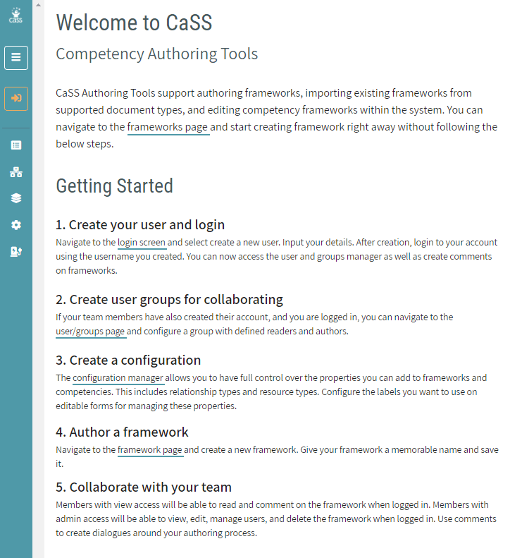 Visit the CaSS project for more information, including a 2020 report on the Competency Framework Development Process, and 2021 reports and guides for the CaSS Authoring Tools.