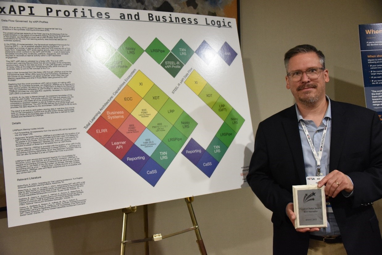 Every year during iFEST, participants are asked to pick their favorite posters, with People’s Choice awards presented to those with the best design and best narrative. For iFEST 2022, the People’s Choice Award for Best Design went to Learning Engineering At A Glance (by Jim Goodell, QIP, Sae Schatz, Ph.D., ADL Initiative, and Aaron Kessler, Ph.D., MIT) and the People’s Choice Award for Best Narrative went to xAPI Profiles and Business Logic (Shelly Blake-Plock, Yet Analytics).