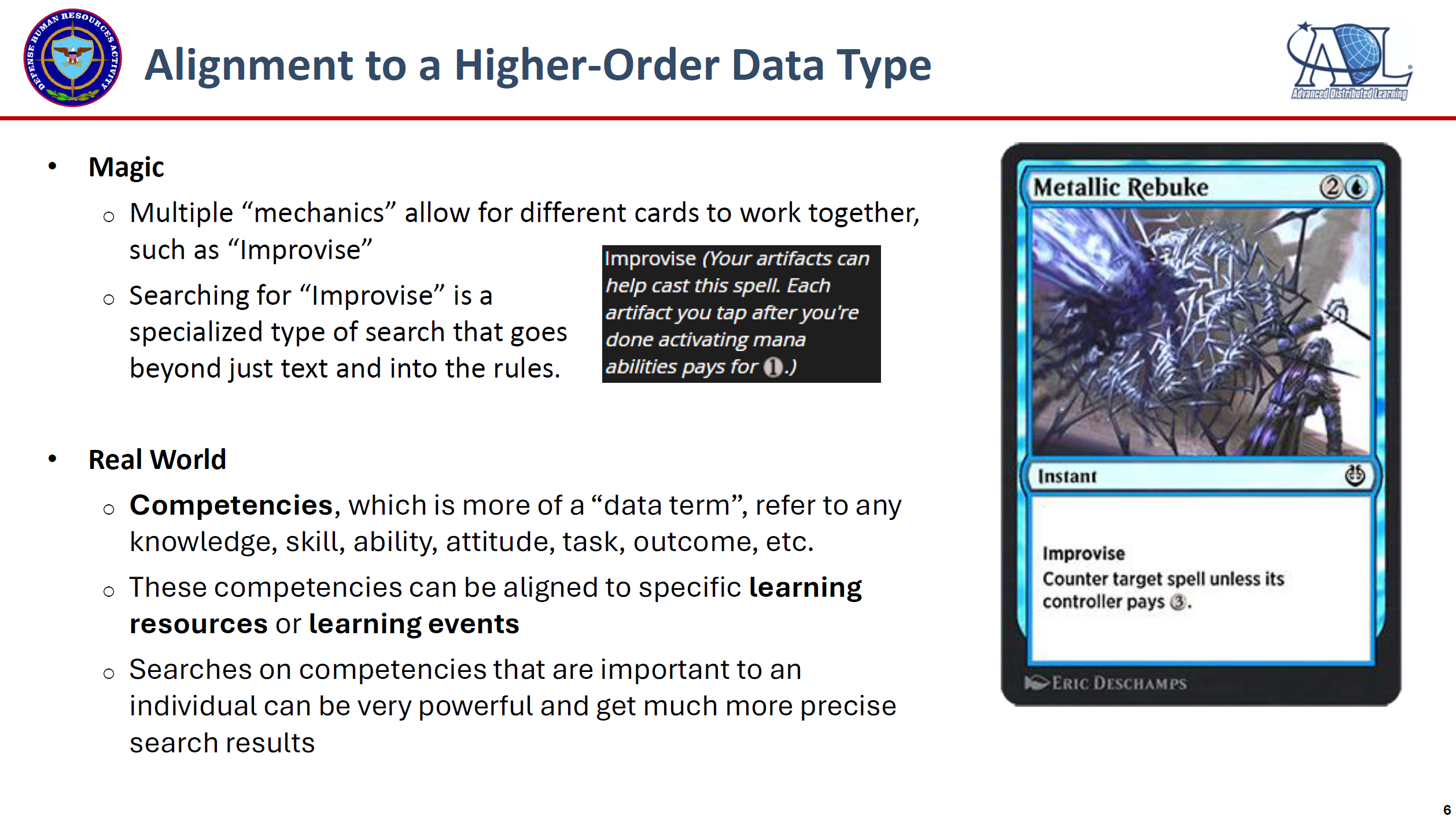 This presentation, originally shared 17 October 2024, shares the value of metadata standards and the future they enable. Learn more about this Presentaion on the Optimizing Learning Opportunities Via Search – A “Magic”al Example.