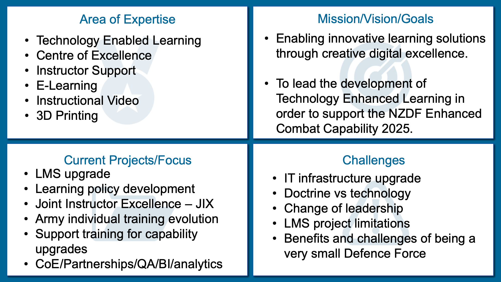 Martin Boult is the Manager of the Training Technology and the main point of contact for the NZDF ADL Partnership Center.