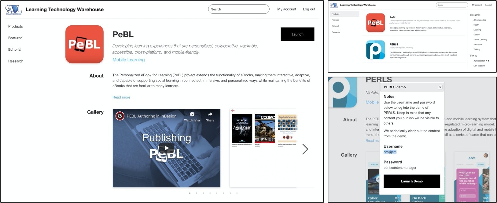 • PERLS Adaptive Learning Platform: An open-source, anytime-anywhere mobile learning technology, designed to support self-regulated microlearning (e.g., quizzes, flashcards, etc.).