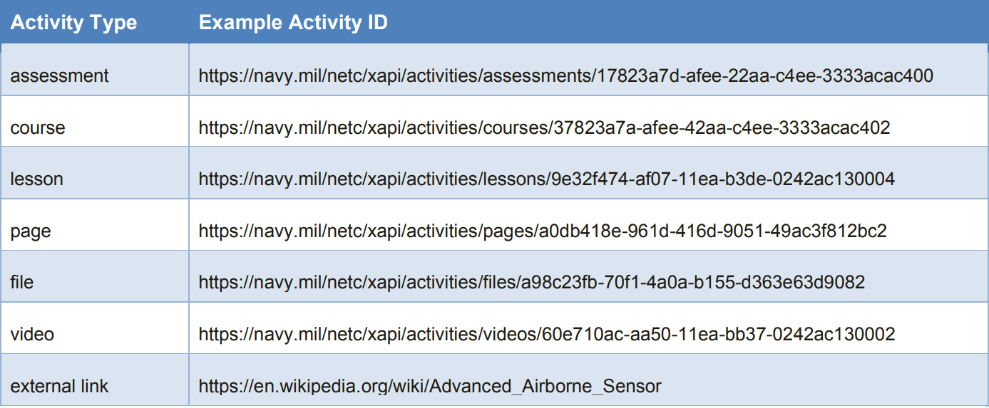 4. For an Activity that is a link to an external resource (such as an external website), use that resource’s URL as the Activity ID. This requirement only applies to external links.