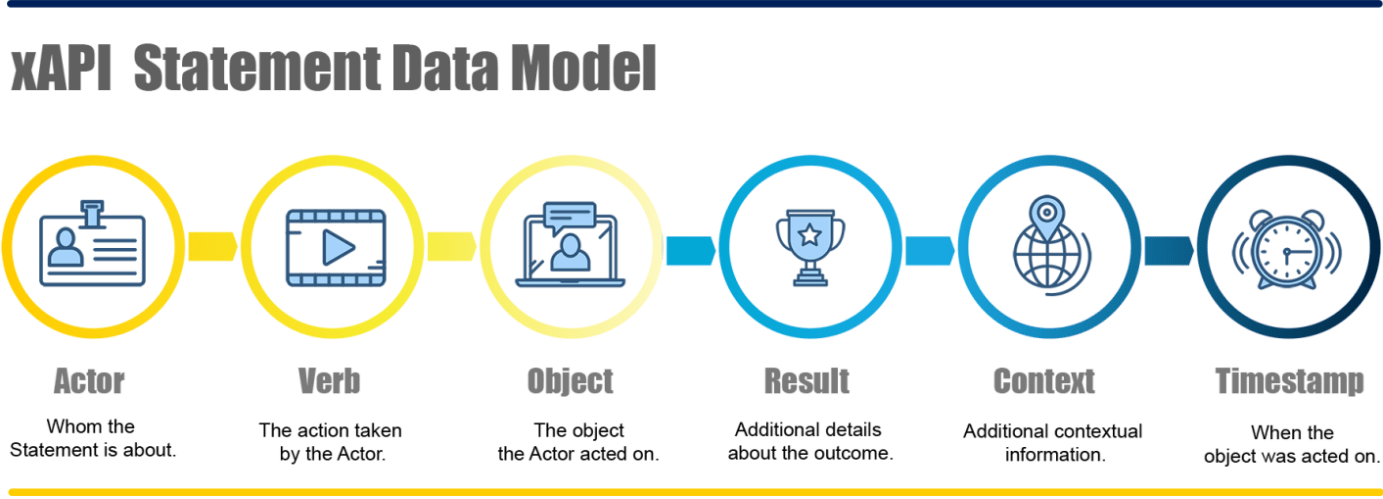 5. All education and training activities capture learner performance data in xAPI format including use of UTC timestamps and generated Statement guides kept track of organizationally and properly. In addition, all activities have solid canonical metadata.