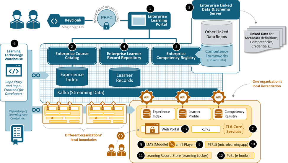 5. TLA Core Services Portal: provides the front end to TLA / EDLM Data Services such as a local course catalog, local competency registry, and local learner profiles.